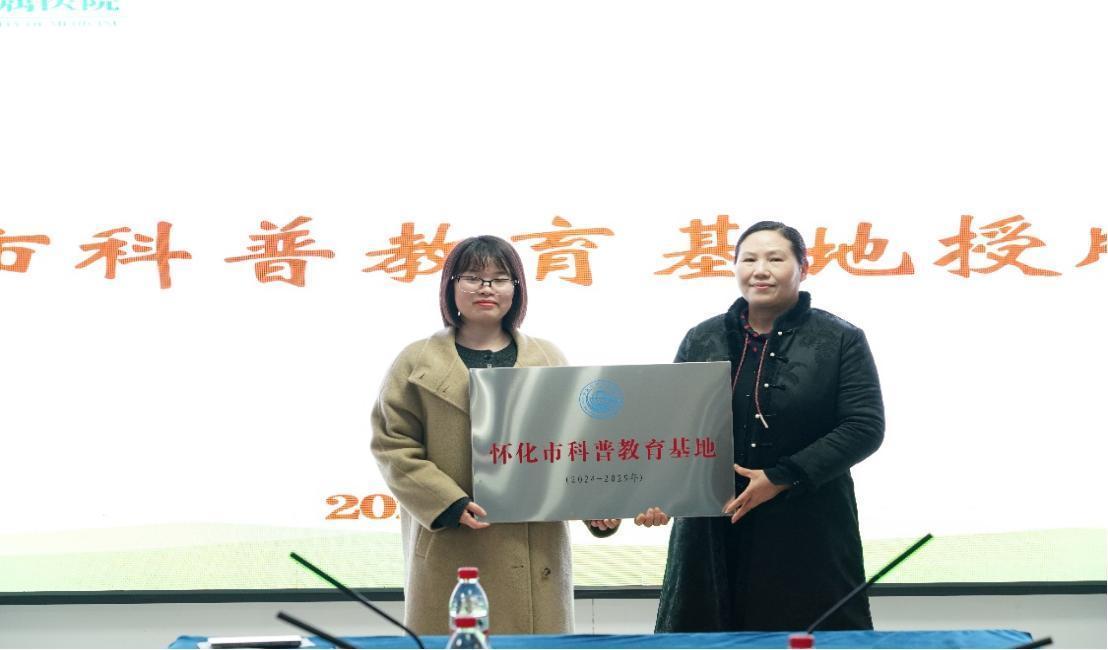 红网时刻新闻怀化2月22日讯(通讯员 龙利群 周丽琦)2月21日,怀化市科普教育基地授牌仪式在湖南医药学院第一附属医院举行。怀化市科协党委书记张梅、主席陈海霞出席,并为医院中医药治未病、“母乳喂养”科普教育基地颁授“怀化市科普教育基地”牌匾。